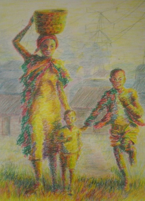 Zulu woman and children in South Africa